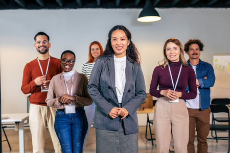 Diverse Group of Professionals Posing in a Modern Business Setting at Daytime Generative AI