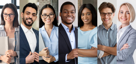 Collage of confident smiling multiethnic group of businesspeople
