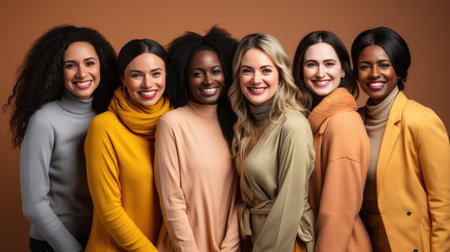 Multiethnic group of women with different skin colors, posing in studio