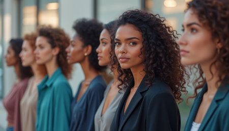group of strong independent women with different skin color standing in row AI generated