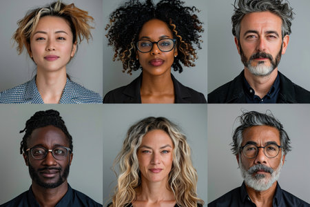 Collage of portraits of an ethnically diverse and mixed age group of focused business professionals