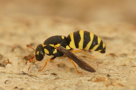 Closeup of the hoverfly sitting at stone. Syrphus ribesii is a very common Holarctic species of hoverfly