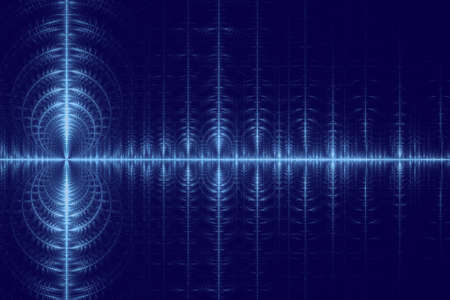 Digital audio waves on screen. Computer generated image rendered with DOF