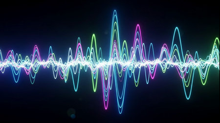 A vibrant soundwave graphic featuring colorful peaks and valleys, representing audio frequencies in an artistic style.