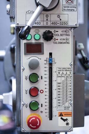 Control panel of drilling and tapping machine. Selective focus.