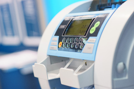 Professional banking equipment for calculating banknotes and cash. Special apparatus, a device for counting money.