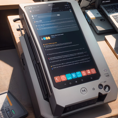Medium shot of IoTenabled tanning device displaying sensor data on a sleek digital interface for customized tanning experience.