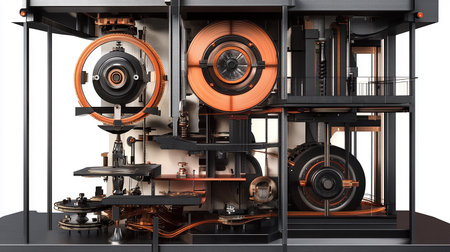 This striking close-up image illustrates an advanced mechanical component within industrial machinery, showcasing precision engineering and intricate details.