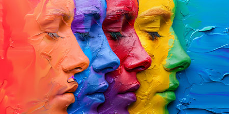 Faces painted with bold colors symbolizing diversity and cultural expression. A visual representation of unity and diversity.