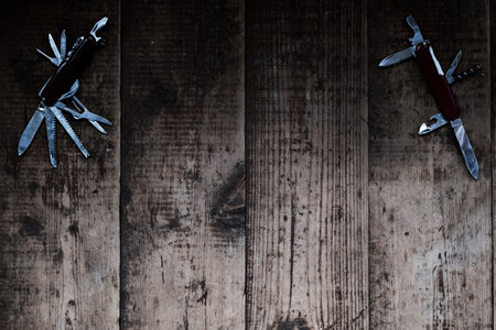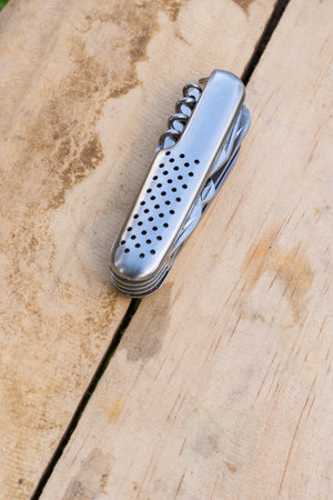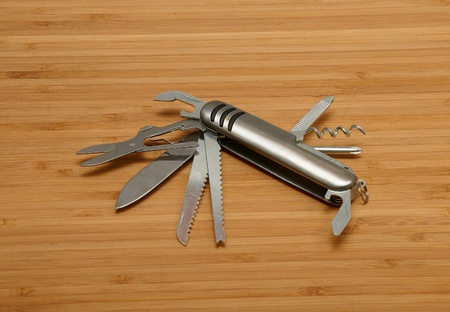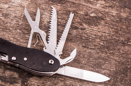 multipurpose pocket knife on wood