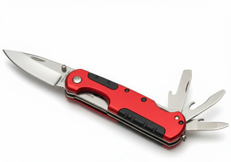 Red Knife multi-tool, isolated on white background.