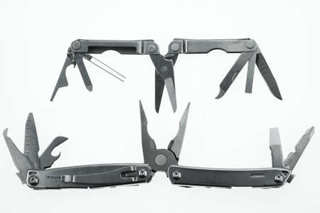 Pocket knife or Steel multi-function tools isolated on white background. Hand tools in industry jobs.