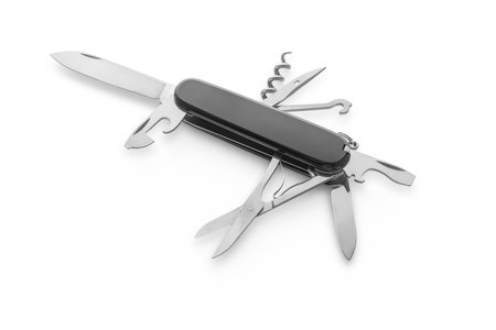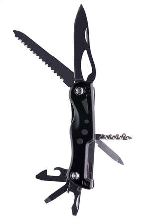 Black swiss army knife isolated on a white background. High resolution photo. Full depth of field.
