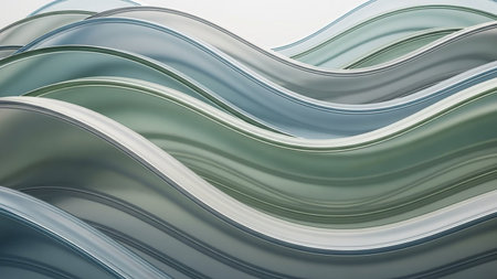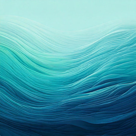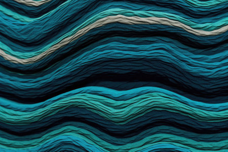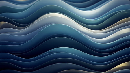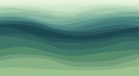 A serene abstract landscape horizontal waves in layered shades of teal and blue, creating a smooth, flowing, and calming ocean-like effect.