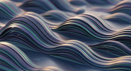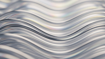 Abstract, flowing metallic waves with subtle iridescent highlights and a soft focus, creating a smooth, reflective...