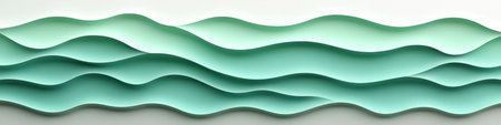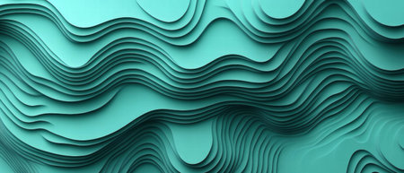 Elegant Mint Teal Gradient Waves Background with Soft 3D Minimal Paper Cut Texture Design
