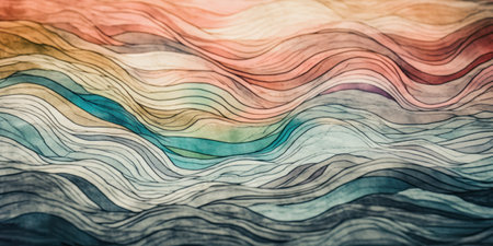 An undulating background showcases a spectrum of vibrant colors in flowing wavy lines. This dynamic image features a soft, subtle texture, making it ideal for various digital applications and contemporary visual projects.