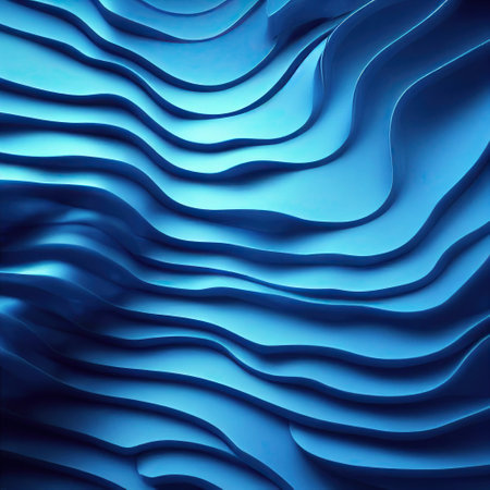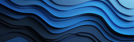 Blue paper waves create an abstract background with flowing and curved lines in varying shades of blue.