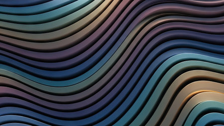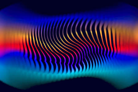 Rows of colorful red, pink, blue, orange and yellow stripes waving and swaying. Geometric abstract background with bright rainbow strips rippling 3D illustration. Vibrant motion graphics backdrop