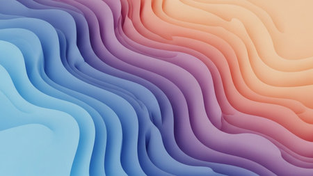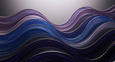 An abstract landscape composed of smooth, layered waves in a gradient of soft blues and purples creates a flowing,...