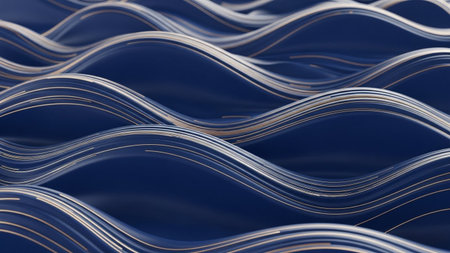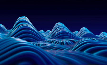 Immerse yourself in the mesmerizing beauty of abstract blue waves, which symbolize a futuristic digital environment filled with glowing light and graceful, flowing motion that captivates the senses