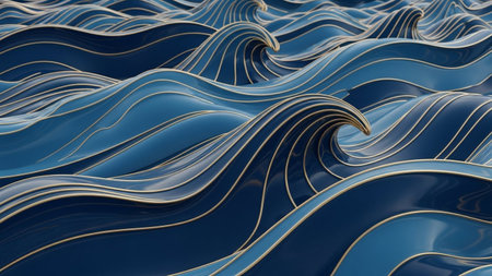 An abstract representation of flowing waves created with metallic lines. The smooth texture and dynamic forms create a visually striking design perfect for modern art projects.