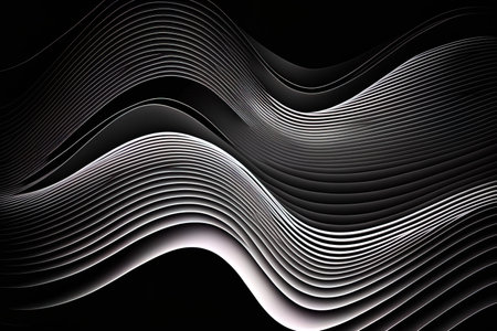Black background with a horizontal white wave design. design of the fashion graphic backdrop. Abstract modern style texture. Monochromatic design template for posters clothes wall coverings and web