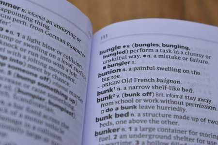 Close Up Of English Definition Dictionary Printed Page Word Of - bunion