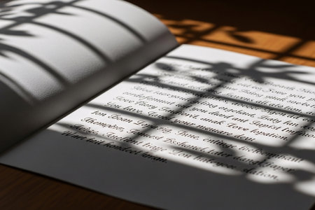 An open handwritten love letter lying on a table with dappled sunlight casting artistic shadow across the paper and cursive text.