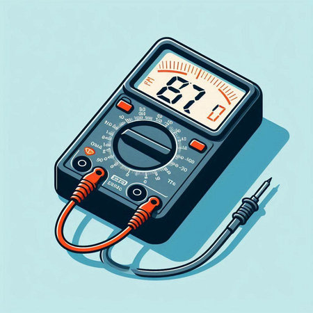 Digital Multimeter on Blue Background with Red and Black Probes for Electrical Measurement