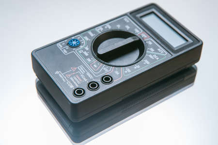 Digital multimeter on a white background. Digital multimeter for measuring electrical current.