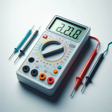Multimete for working on a residential electrical installation photographed on a white background