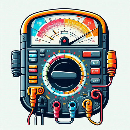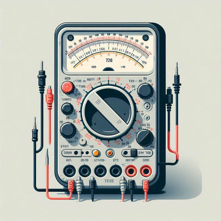 A hand-drawn multimeter is a scale used to measure various values such as voltage, resistance, current, in the scene.