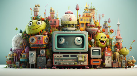 This detailed illustration showcases a collage of vintage electronics and audio devices, representing the evolution of technology and communication in a visually striking manner.