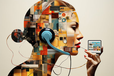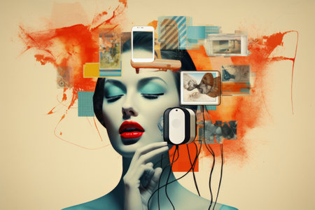 Sensational Fusion: Exploring Contemporary Art through a Collage of a Tech-Savvy Female Embracing So