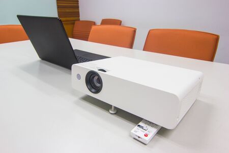 white projector for presentation for business work on table in a meeting room