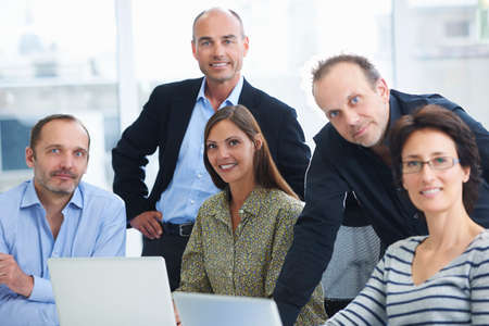 Businesspeople posing for group portrait in office