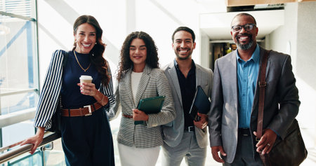 Stand up straight and success in your stride. Portrait of a group of businesspeople standing together in an office.