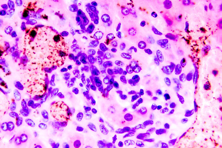 Hodgkins lymphoma, light micrograph, photo under microscope. High magnification