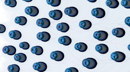 Heap of Cartoon Eyes Look Up on Blue Background with same shadows. Abstract Pattern Background in Pop Art Style. 3D Rendering