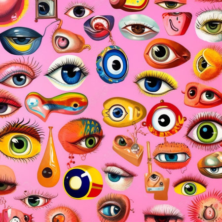 Colorful Eyeball Flower Stack Abstract and Surreal Optical Illusion Concept with Vibrant Colors and Unique Design