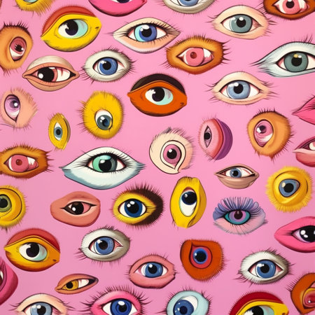 illustration abstract vignetting pattern background eye blue design seamless doodle pink. Generative AI.
