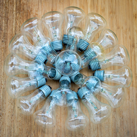 Close up of a group of incandescent lightbulbs.