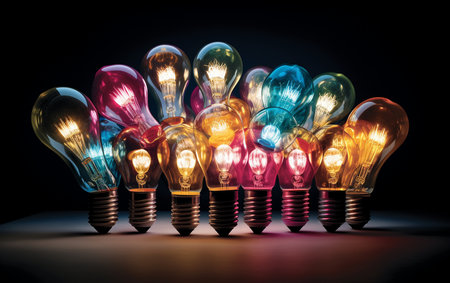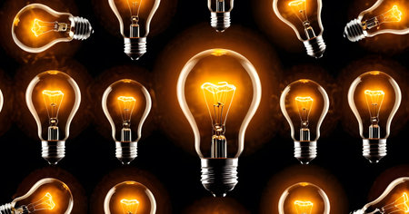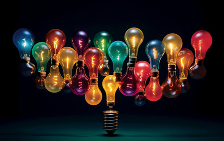 A collection of illuminated lightbulbs float against a dark backdrop, symbolizing ideas and innovation. Each bulb glows warmly, creating a contrast with the shadowy environment. AI generation AI generation