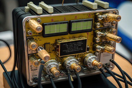 close-up of sensors, with wires and cables visible, created with generative ai