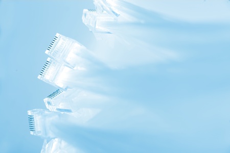 Rj45 cords on the stage. Computer accessories used in network connections. Black background.