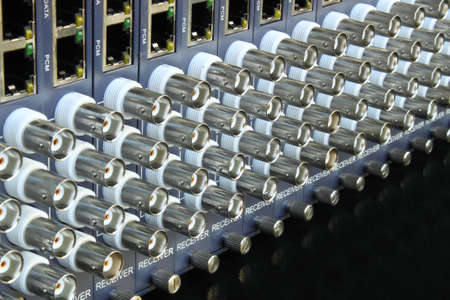 Interface of card Equipment optical telecommunication Abstract blurred image for use as a background Close-up