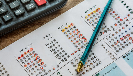 Detailed view of a table covered in rows of numbers and formulas, showing data analysis or financial calculations, A spreadsheet filled with rows of numbers and formulas