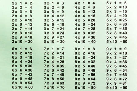 VECTOR Multiplication Table Educational Material for Primary School Level.