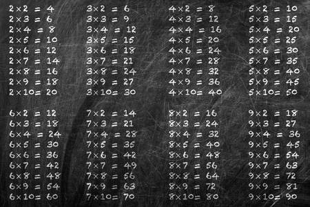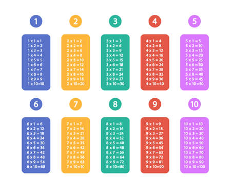 Table of multiplication. Math table of multiplication. Mathematics poster for school and children. Elementary school education. Colorful kid numbers. Vector.